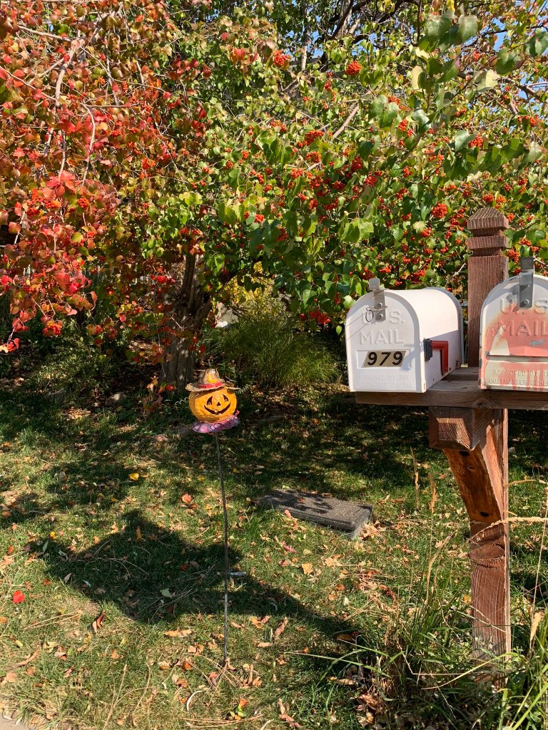 Hop off the bus. Scurry to the mailbox. Plunge the pumpkin into the ground.